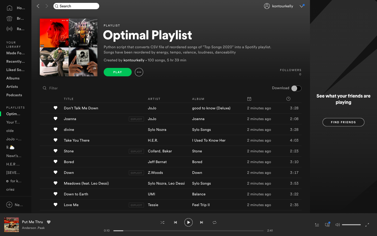 My own version of Spotify's popular annual "Wrapped" and a program to reorder the songs in my "Top 100 Songs for 2020" by optimal musical flow.